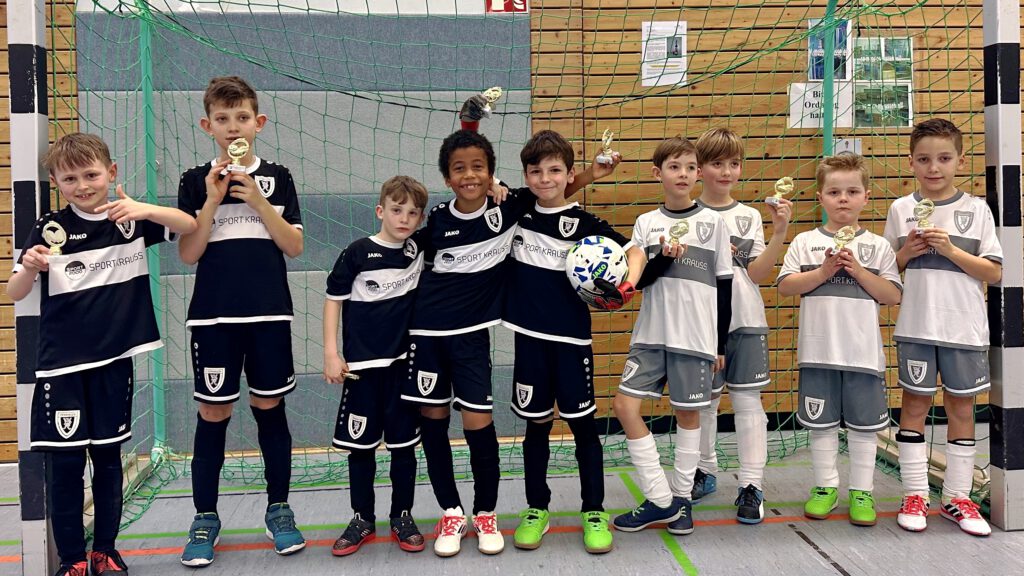 Am 15. Februar 2026 nahm unsere F1-Jugend (Jahrgang 2017) am Hallenturnier in Dagersheim teil. Gespielt wurde in zwei Varianten: In schwarzen Trikots traten die Jungs im Modus 4 gegen 4 mit „letztem Mann hat Hand“ an, während sie in weißen Trikots im 3 gegen 3 auf Funino-Tore spielten. Insgesamt standen fünf Spiele à sieben Minuten auf dem Programm.