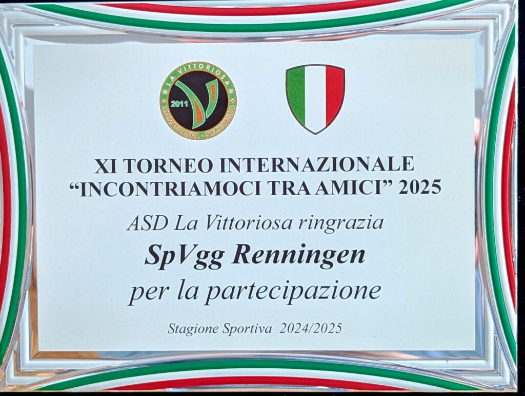 Wir danken unseren Gastgebern für den herzlichen Empfang mit Sonne, guter Laune und jede Menge Fußball. Danke für eure großzügige Gastfreundschaft und die Organisation dieses wunderbaren Besuchs. Die Wärme und Herzlichkeit, mit der ihr uns empfangen habt, berührt uns zutiefst. Für unsere jungen Spielerinnen und Spieler wird dieser Besuch unvergesslich bleiben – als sportliches Erlebnis und als Begegnung zwischen unseren Vereinen und Kulturen. Lasst uns auch in Zukunft gemeinsam tolle Spiele erleben, uns treffen und miteinander feiern. Möge dies die gelungene Fortführung einer langen und lebendigen Freundschaft zwischen Renningen und Occhiobello sein! Danke an unsere Freunde der ASD Vittoriosa, der Stadt Occhiobello und alle Helferinnen und Helfer!