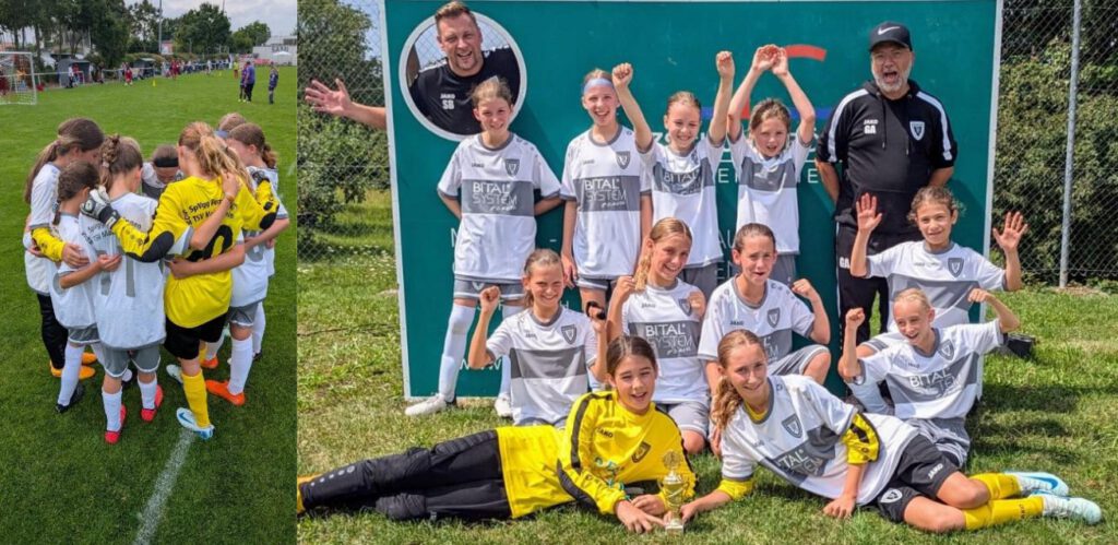 Am Samstag gingen unsere Mädels im Sami-Khedira-Stadion in Oeffingen auf Torejagd. In einem stark besetzten Turnier kämpfte sich unser Team gegen die älteren Mädels spektakulär ins Finale. Die Vorrunde wurde ohne Gegentor als Tabellenerste abgeschlossen. Im Halbfinale wartete dann das ebenfalls ungeschlagene Team aus Jungingen. Ein echter Krimi – ein sehr intensives, umkämpftes Spiel, das schließlich ins Neunmeterschießen ging. Eine Top-Penalty-Killerin und gute Nerven sorgten letztlich für den Finaleinzug. Hier mussten sich unsere mit fünf 2014er-Spielerinnen verstärkten 2013er-Mädels dann den etwas älteren (Jahrgang 2012/13) Bernhäuserinnen geschlagen geben, die das Finale letztlich verdient gewannen. Was bleibt, ist ein verdienter 2. Platz, eine mega Mentalitäts- und Teamleistung und eine Mannschaft, vor der man einfach den Hut ziehen muss. Ein intensives und erfolgreiches Jahr endet – und die Mädels haben sich ihre Ferien und die Sommerpause redlich verdient.
